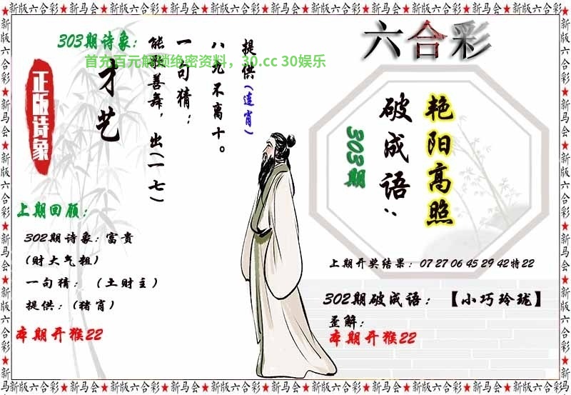 | 302期 | 0-1-2-3-6-7-8 | 猴22准 |